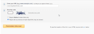 4. Isi Security Code dan kalian pilih "Report all occurrebces of each dead link (may be slower) setelah itu find broken link now !